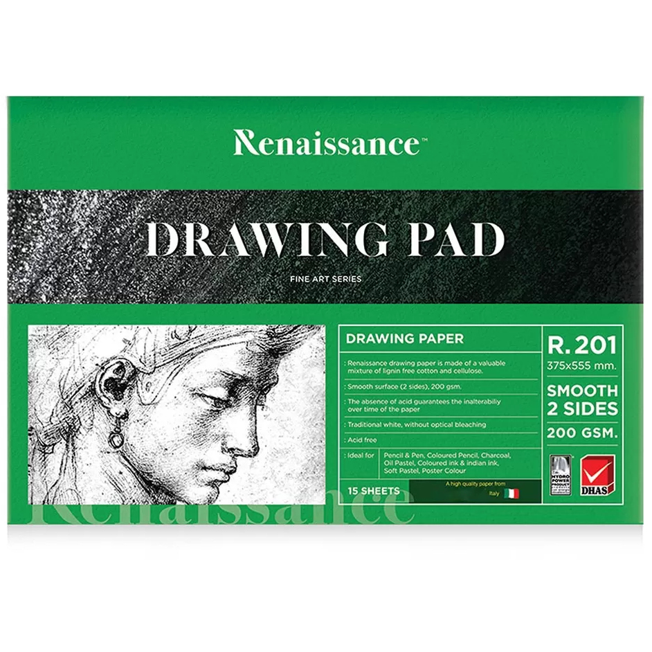 Högkvalitativt skissblock med slätt, dubbelsidigt naturvitt 200 g papper. Lämplig för färgpennor, blyertspennor, fiberpennor, bläck och kritor.