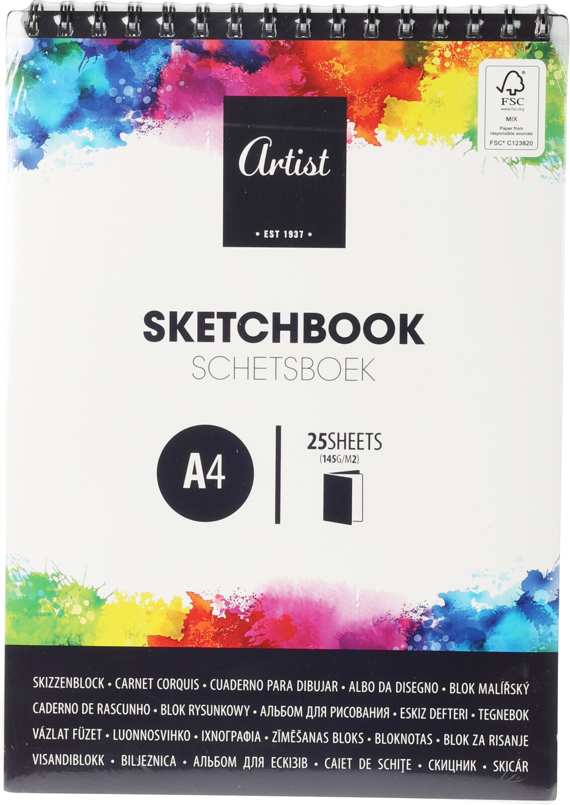 A4 skissbok, 25 ark, 145 g/m², spiralbindning, FSC-certifierad. 31x21x2 cm, vikt 0,322 kg.