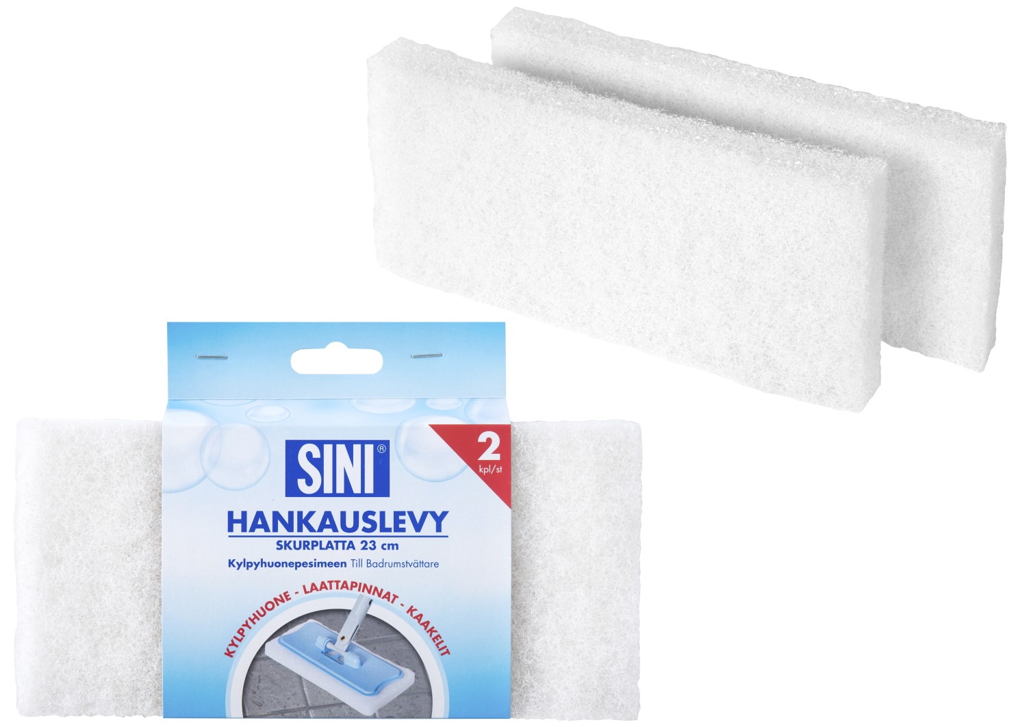 Badrumstvättens skurplatta är lämplig för grundlig rengöring av alla ytor som är resistenta mot vattentvätt och skurning. Skurplattan fästs på SINI badrumstvätt eller en liten universalmopp.