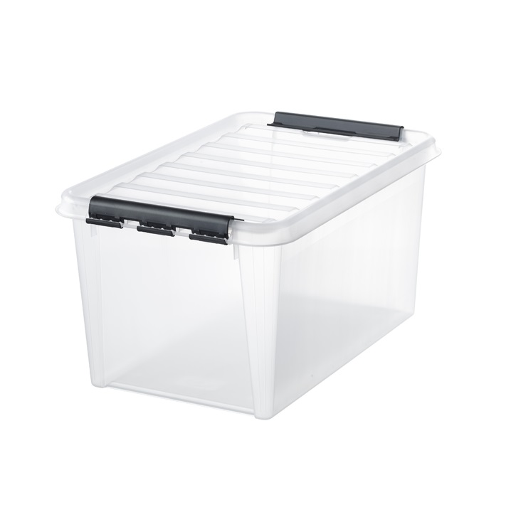 Den mångsidiga och högkvalitativa förvaringslådan är perfekt för förvaring av till exempel sportutrustning eller säsongskläder. Kraftiga förslutningar håller locket tätt stängt. De tomma lådorna staplas inuti varandra och med locket ovanpå varandra. Driftstemperaturen för den livsmedelssäkra förvaringslådan är -40 °C till +120 °C.