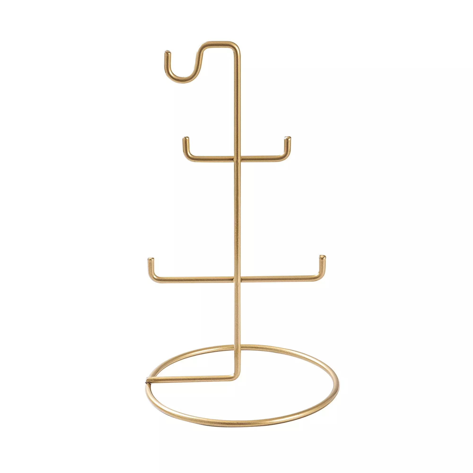 Guldfärgen på detta stativ ger en touch av lyx och elegans till din smyckessamling. Det är ett vackert komplement till alla stilar, oavsett om du föredrar klassiska, vintage eller moderna smycken. Visa upp dina favorithalsband, armband, örhängen och ringar på detta stativ och förvandla dem till fantastiska konstverk.