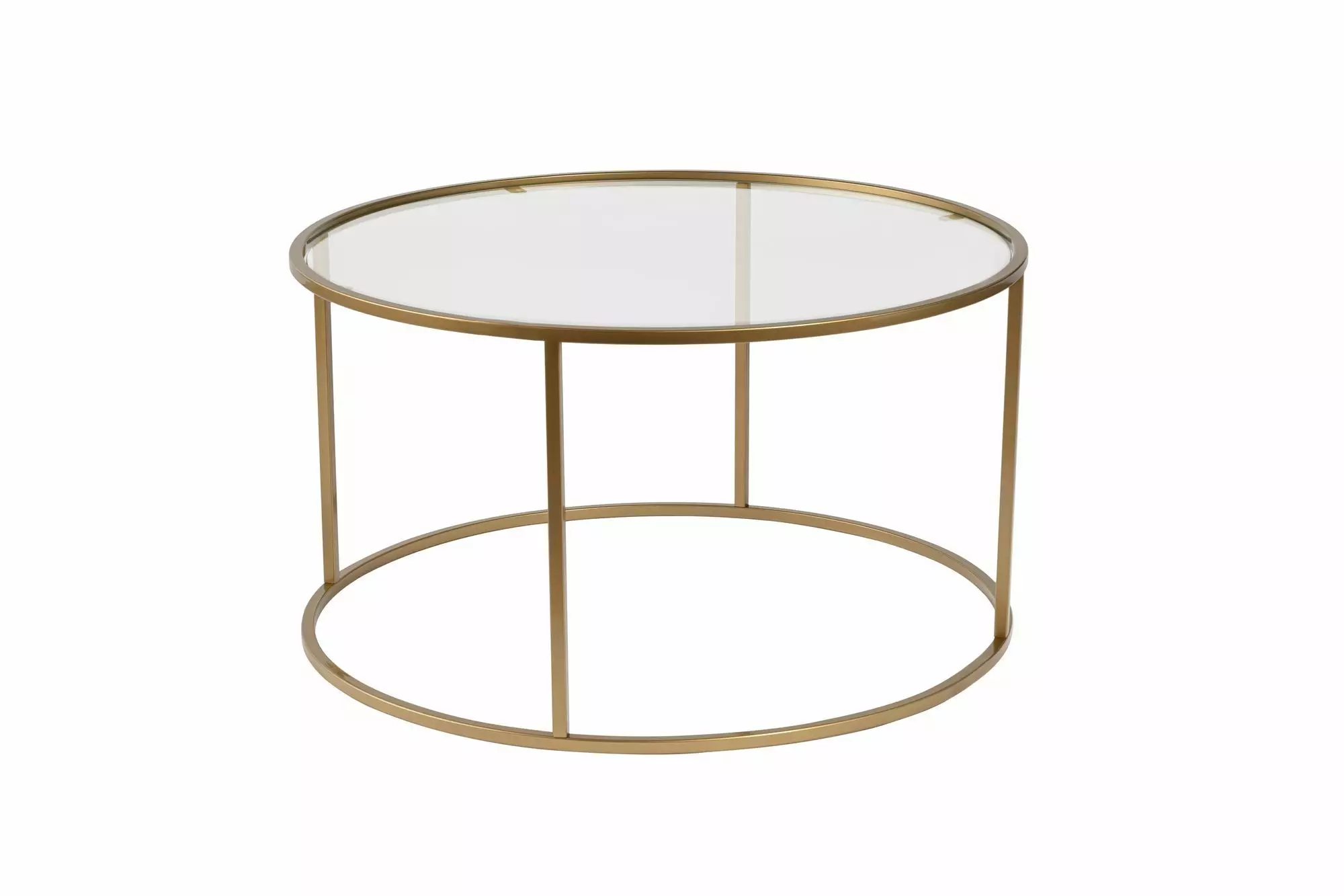 Lägg till en touch av sofistikering i ditt vardagsrum med detta lyxiga soffbord. De guld- och transparenta färgerna skapar en chic och modern look som kommer att imponera på dina gäster och göra ett statement i ditt hem.