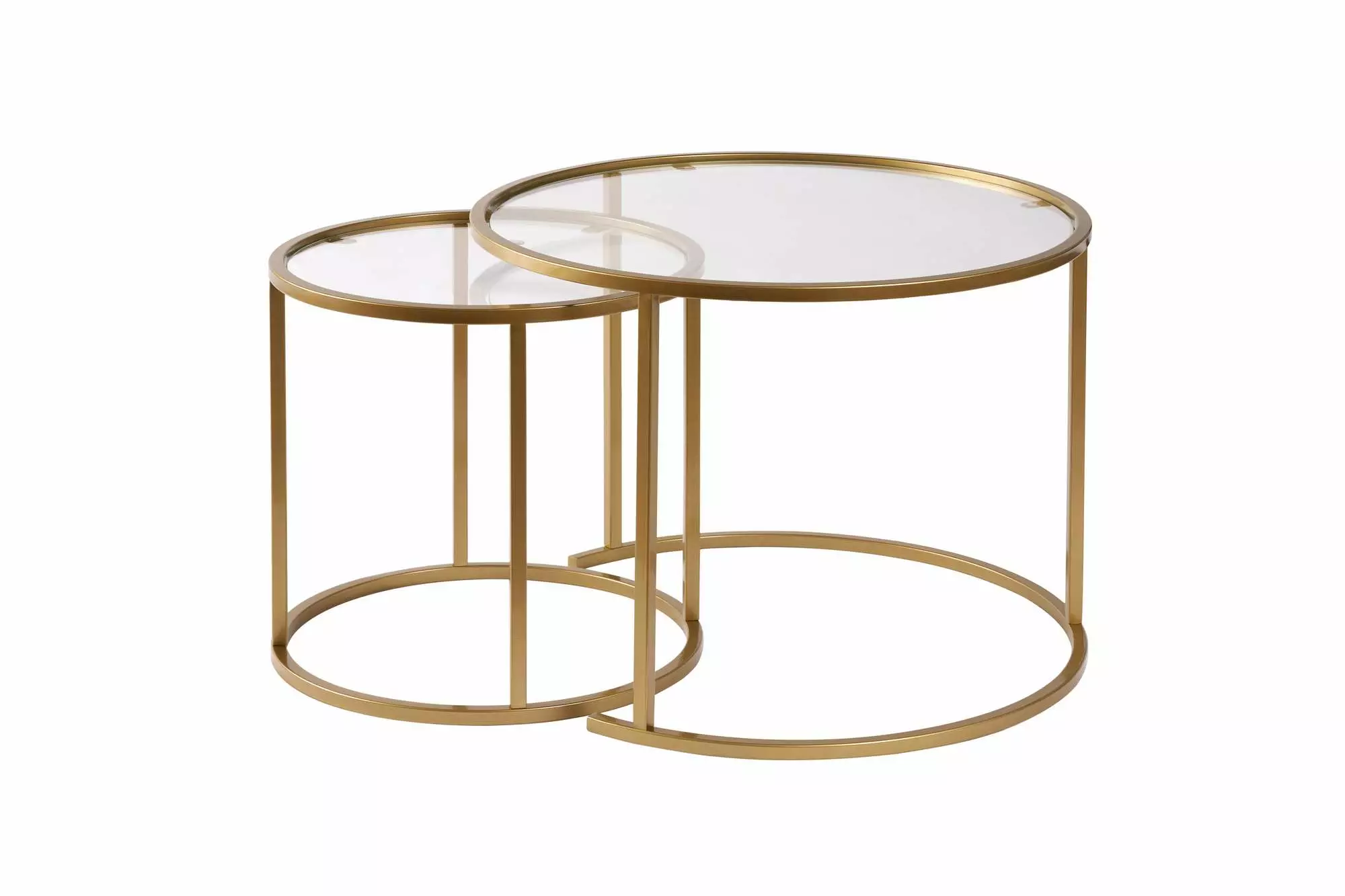 Tillverkat med härdat glas och en 100% metallram, utstrålar detta soffbordset kvalitet och stil. Den transparenta glasytan tillför en touch av sofistikering, medan de gyllene accenterna ger en känsla av glamour till ditt utrymme.