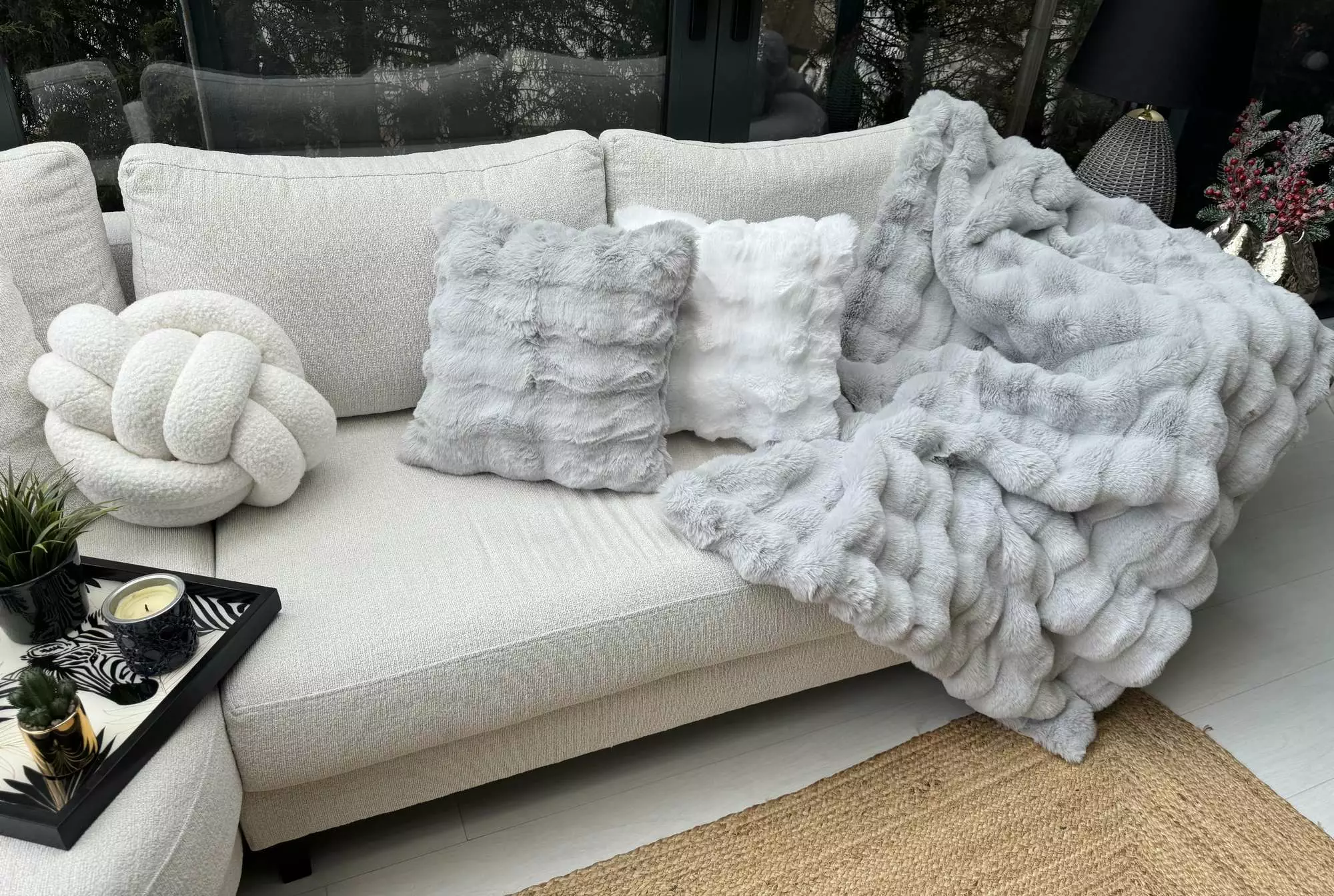 Förvandla ditt vardagsrum med vårt lyxiga sofföverdrag i en fantastisk nyans av grått. Tillverkat av 100% polyester, är detta överdrag inte bara mjukt vid beröring utan också otroligt hållbart, vilket säkerställer att det kommer att stå emot tidens tand.