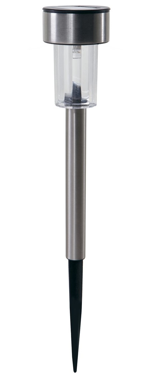 Solcellsbelysning i borstat stål. Belysningen är enkel att motera i marken tack vare den spikformade foten av plast. Höjd 36,5 cm.