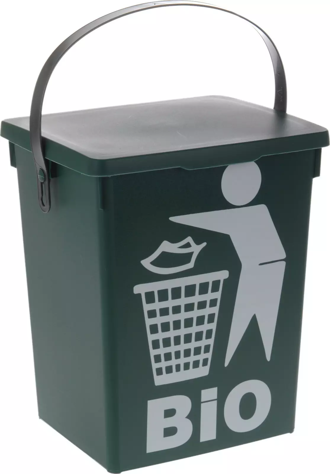 Det är smart att samla bioavfall i en bioavfallsbehållare med lock innan återvinning. Locket förhindrar att oönskade lukter sprids. Behållaren av plast har ett handtag, så det är lätt att bära avfallet till kompost-/uppsamlingskärlet.