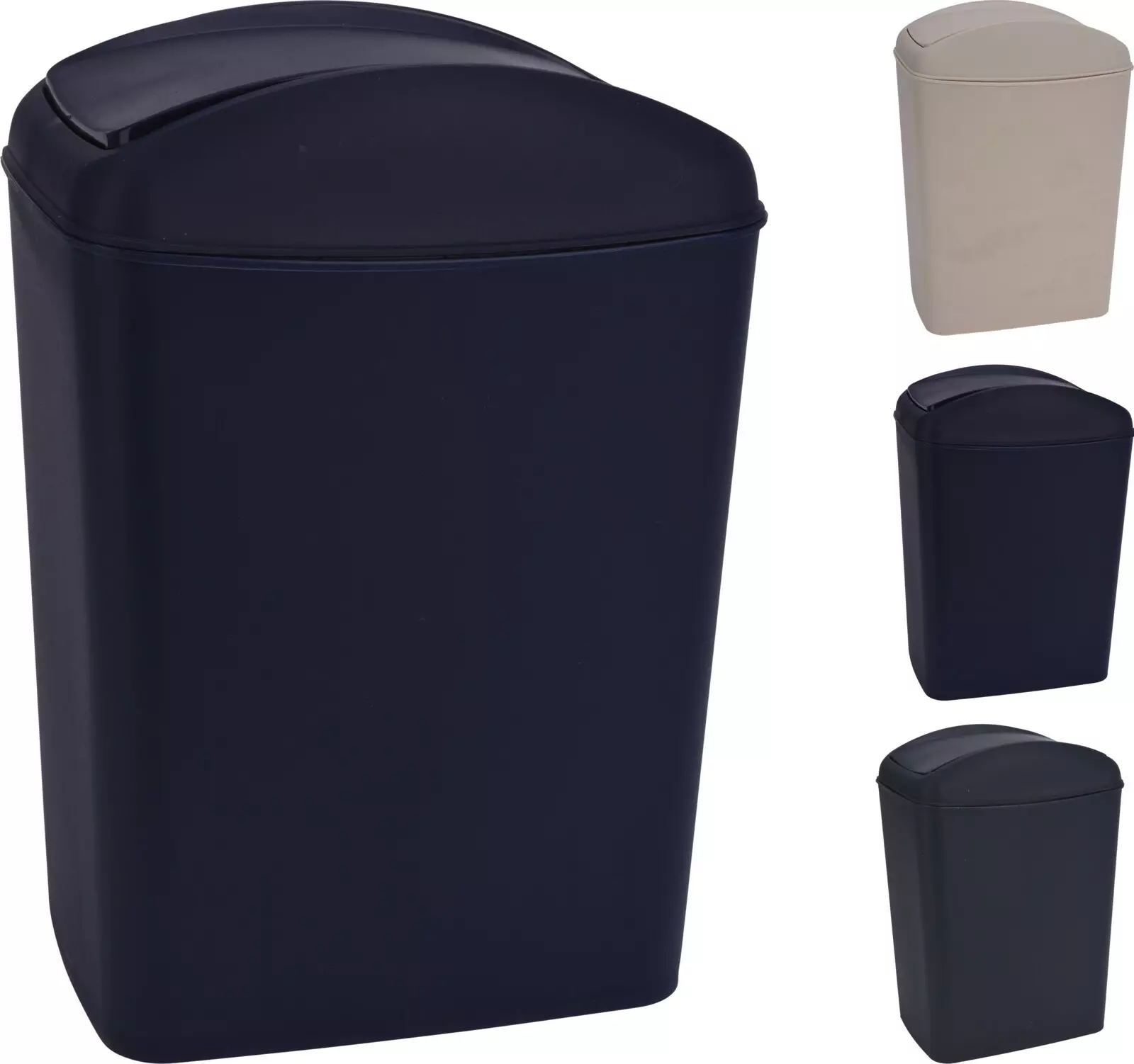 Kompakt och stilren 5-liters soptunna, tillverkad av hållbar polypropen. Finns i tre matta färger: mörkblå, beige och svart. Rektangulär design och rundat lock som öppnas upptill, vilket gör den till ett idealiskt val för köket eller kontoret. Storlek: 175x125xH250mm, vikt: 220g.