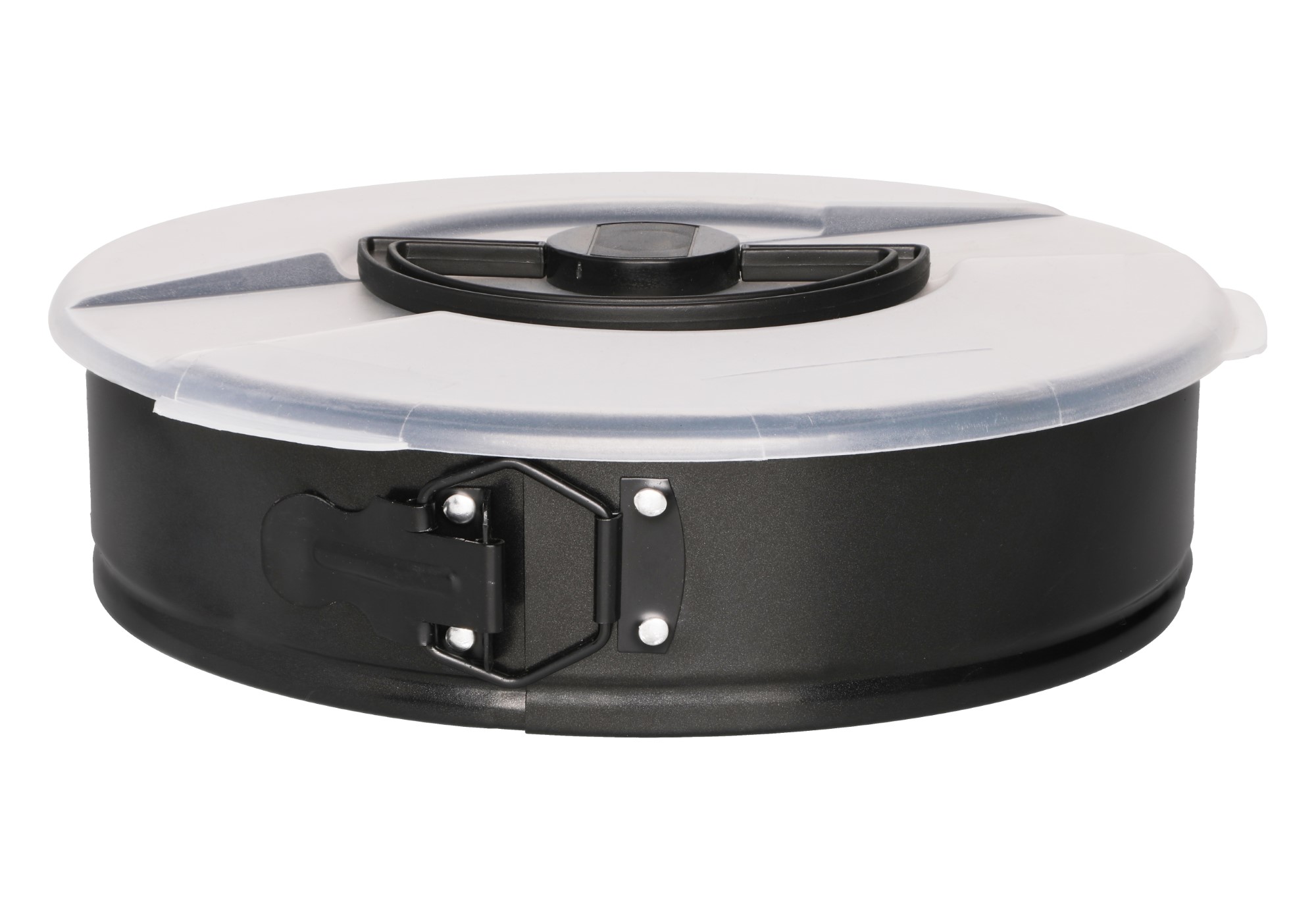 Bekväm pajform med non-stick beläggning och stadigt plastlock. Handtaget med handtag gör det enkelt att ta tag i formen och bakverken. Använd köksredskap av plast eller trä som inte repar beläggningen.
