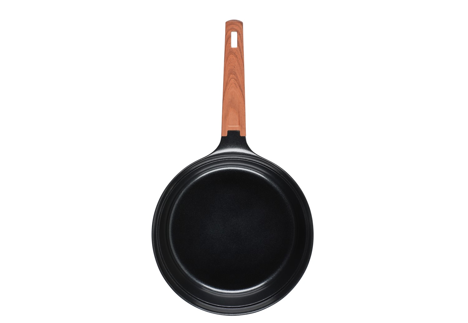 Maku Kitchen Life stekpannor är gjorda av slitstarkt gjuten aluminium med keramisk beläggning, vilket ger utmärkt värmeledningsförmåga. Snyggt halkfritt handtag i trämönster.
