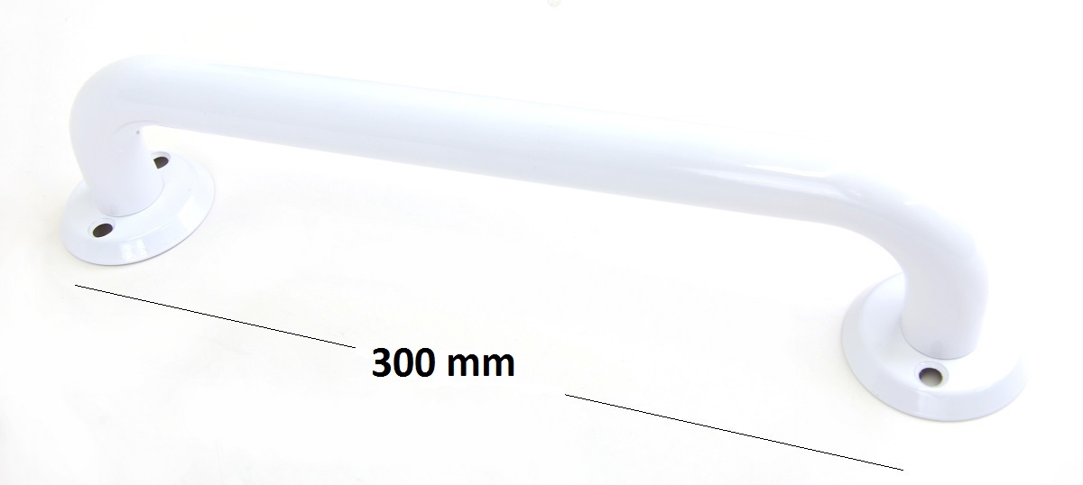Vitt stödhantag för bad och dusch i rostfri mässing.