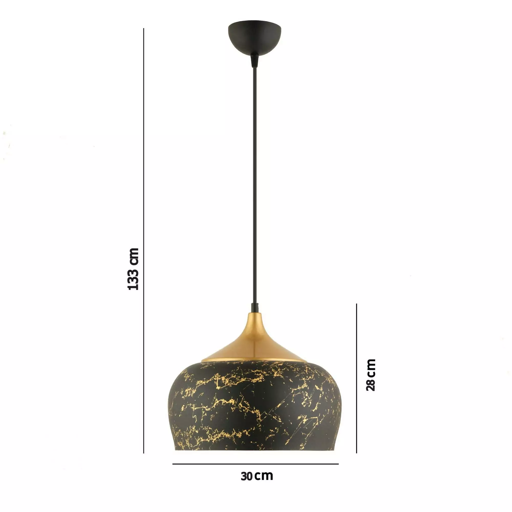 Den vita ljuskronan har en unik mössstorlek på Ø30 h: 28 cm, med en total höjd som kan justeras från 33 till 133 cm för att passa ditt utrymme perfekt. Basplattans storlek är Ø9,5 h: 5 cm, vilket ger en stabil grund för denna iögonfallande fixtur. Ljuskronan är utformad för att rymma 1 x e27 max 40W glödlampa (ingår inte) och fungerar på 220-240V med en IP-kod för IP20 för extra säkerhet.