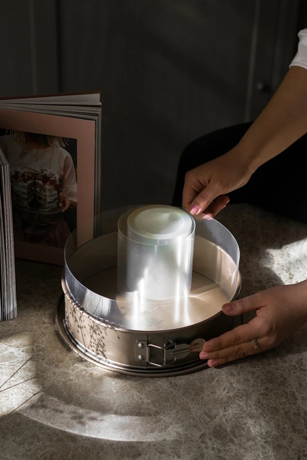 Användning: skär en bit som passar till kakformen från kantfilmrullen. Kantfilmen läggs mellan kakformen och kakan som ska frysas. Lägg på kantfilmen innan du fyller formen. Efter att ha tillsatt fyllningen, ställ formen kallt för att stelna. Kantfilmen kan användas t.ex. För att göra gelékakor. Psst! Filmen är inte ugnssäker.