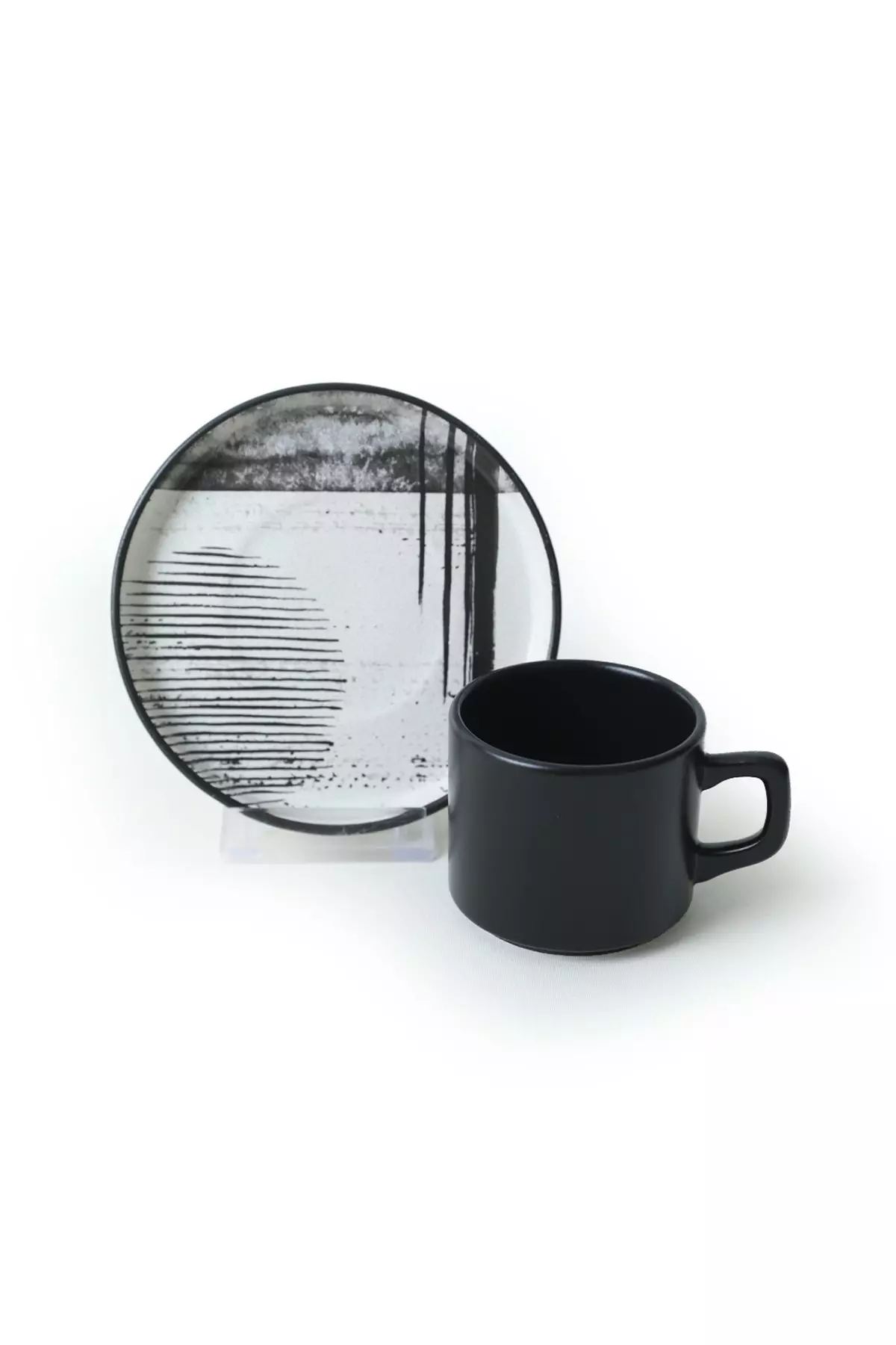 Tekoppar Set Hermia Svart Vit Keramik 12 Delar