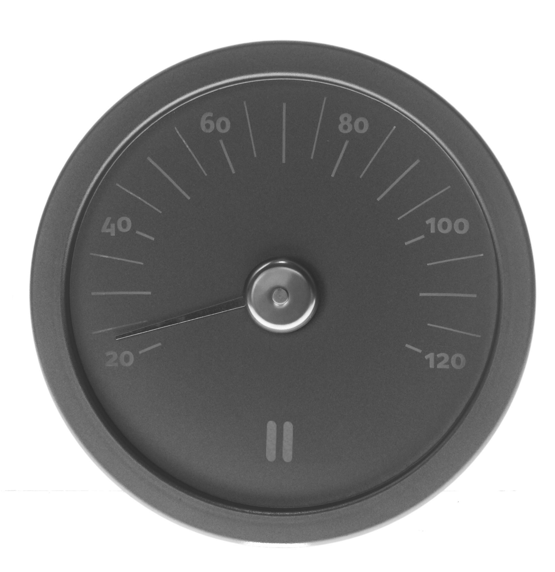 En temperaturmätare i bastun är en viktig utrustning för att uppnå en njutbar bastuupplevelse. Den snygga design-mätaren kompletterar serien av svarta aluminiumprodukter. Celsius skala.