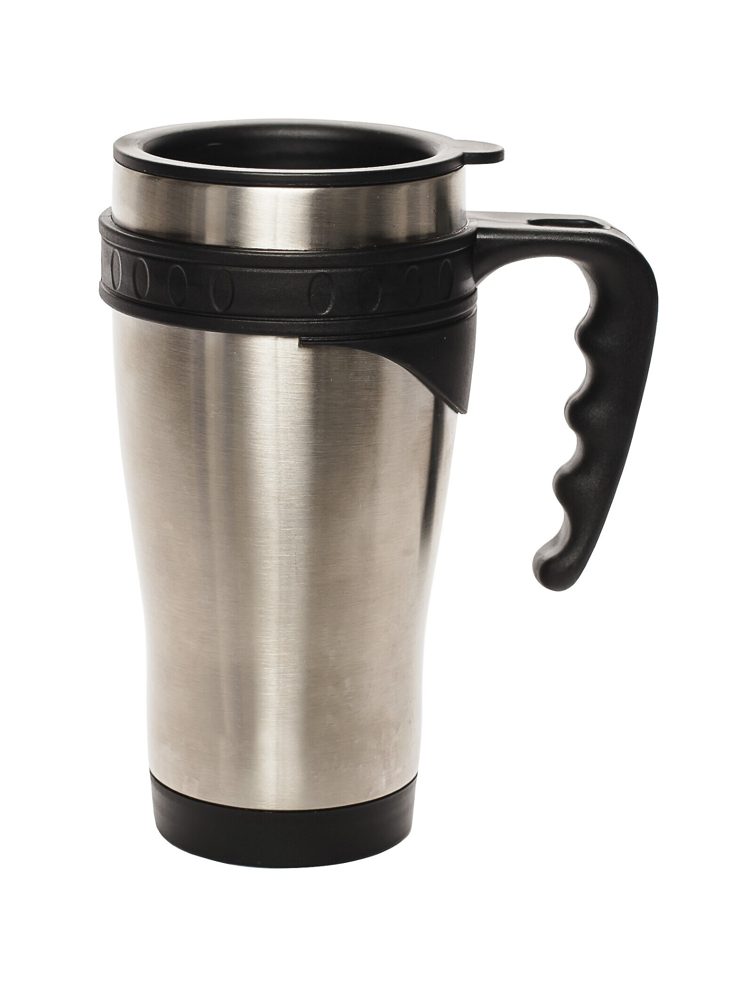 Den vakuumisolerade termosmuggen Car håller drycken varm eller kall under lång tid. Stålmuggen passar i de flesta bilmodellers mugghållare och det stadiga plasthandtaget är enkelt att få grepp om. Bilmuggen har fem års garanti.