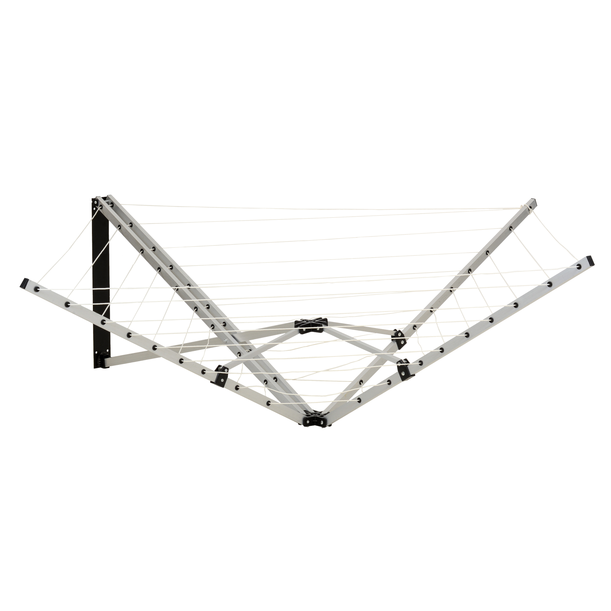 Den här torkställningen är en väggmonterad torkvinda som tar liten plats ihopfälld. Utfälld hanterar den rejält med tvätt, men kräver då sitt utrymme och passar därför bäst i ett stort tvättrum eller för montering utomhus. Vind- och vattenresistent.