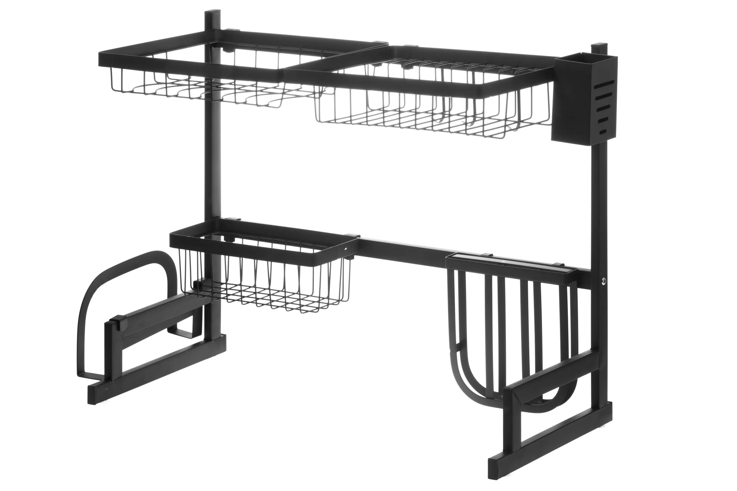 Ett platsbesparande torkställ att placera vid diskbänken. Plats för, t.ex. diskmedel, disk, bestick och skärbrädor. Svartlackerat rostfritt stål. 65 x 52 x 32 cm.