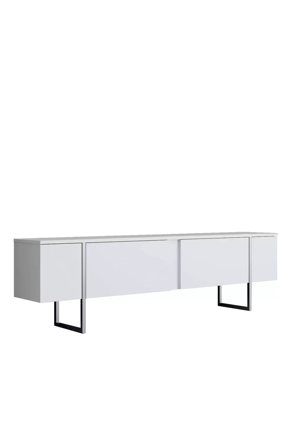 Den 100% melaminbelagda spånskivan ser inte bara bra ut utan säkerställer också att din tv-möbel kommer att hålla i många år framöver. De eleganta metallbenen ger en touch av elegans och stabilitet, vilket gör denna möbel både snygg och funktionell.