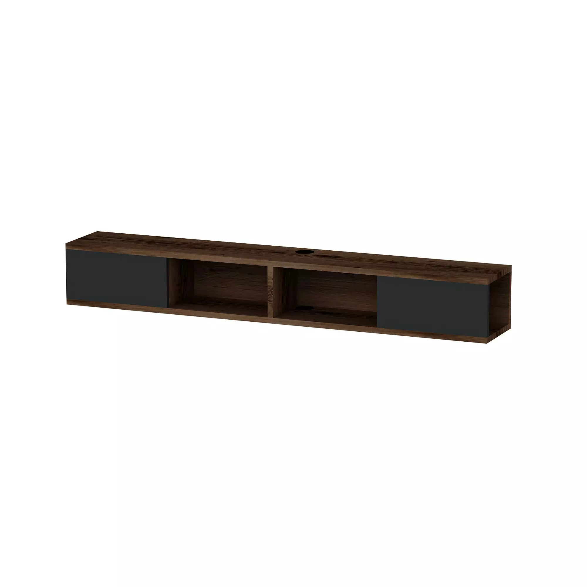 Med en elegant design i en kombination av ljus valnöt och antracitfärger kommer detta tv-stativ att smälta in i alla inredningsstilar. Skivans tjocklek på 18 mm garanterar stabilitet och lång livslängd, vilket gör den till en pålitlig möbel i många år framöver.