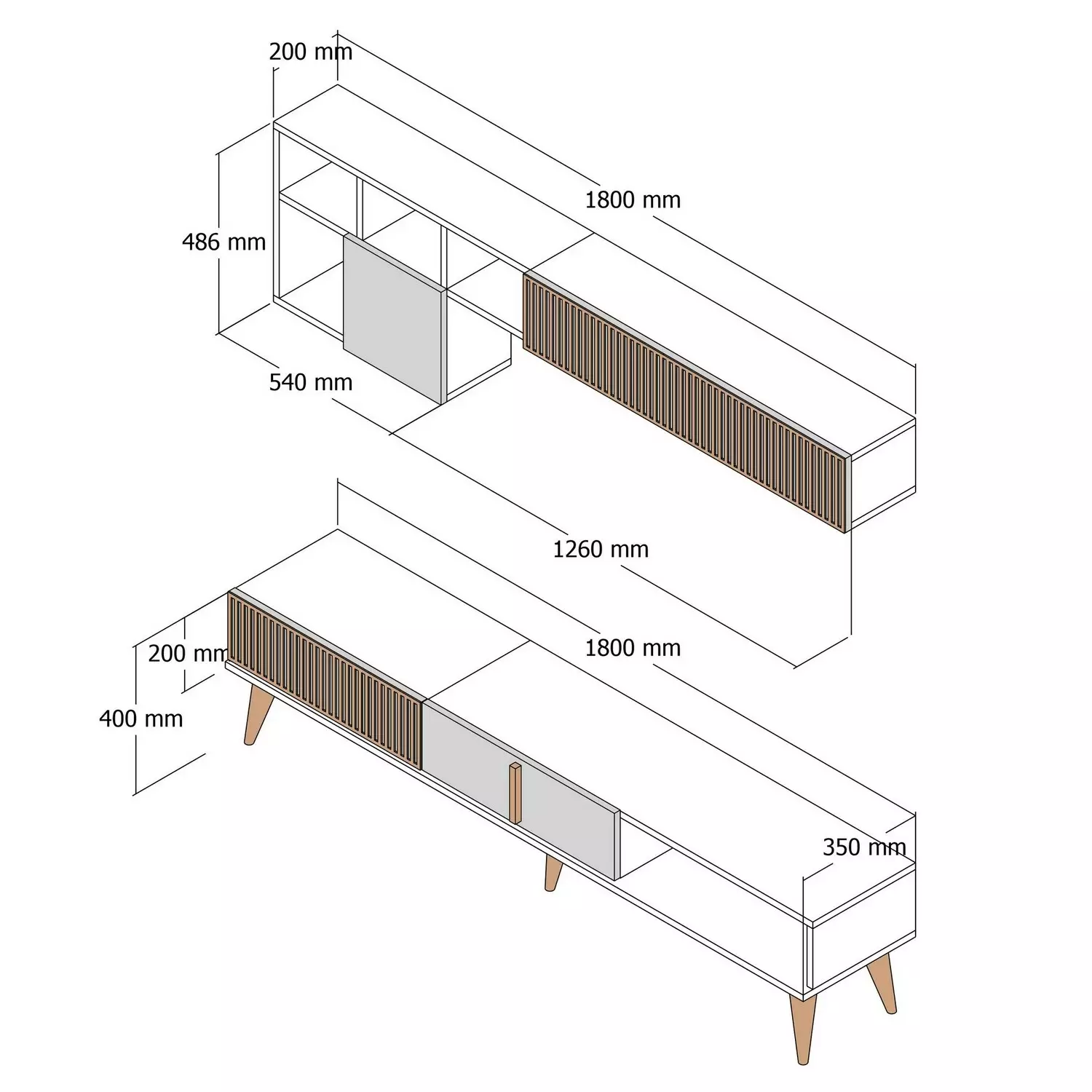 - Dimensioner för TV-ställ: Bredd: 180 cm, Höjd: 40 cm, Djup: 35 cm
