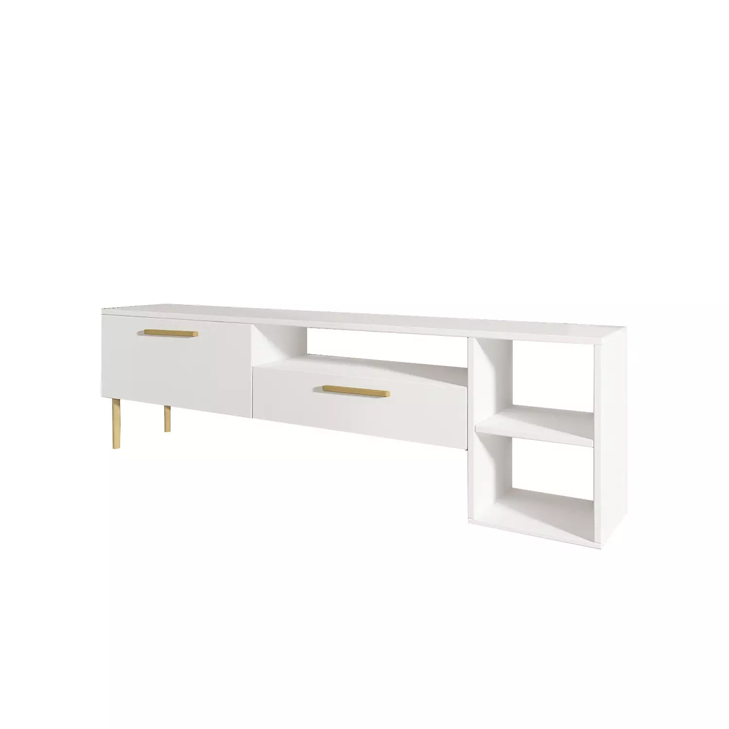Fördjupa dig i den rena skönheten hos vårt TV-stativ, tillverkat med yttersta precision och utformat för att lyfta din heminredning till nya höjder. Kombinationen av vitt och guld utstrålar en känsla av överflöd och tillför en touch av sofistikering till alla rum.
