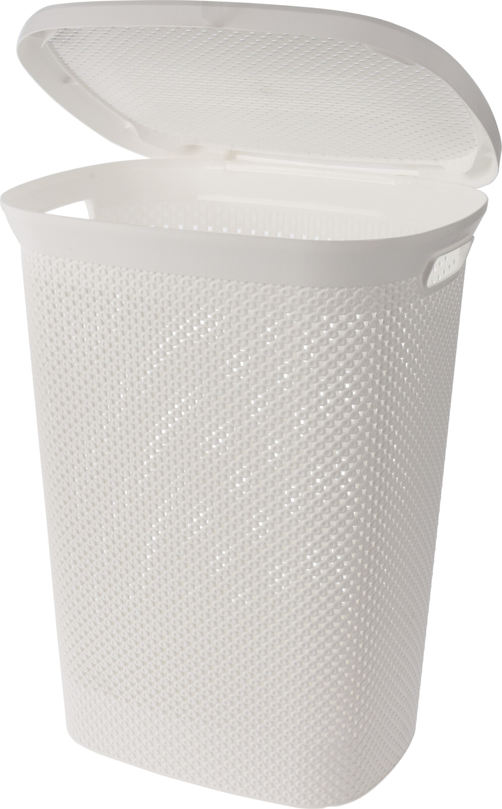 60L vit tvättkorg, stilren och underhållsfri. Polypropen, 46x37x59,5 cm, vikt 1,615 kg.