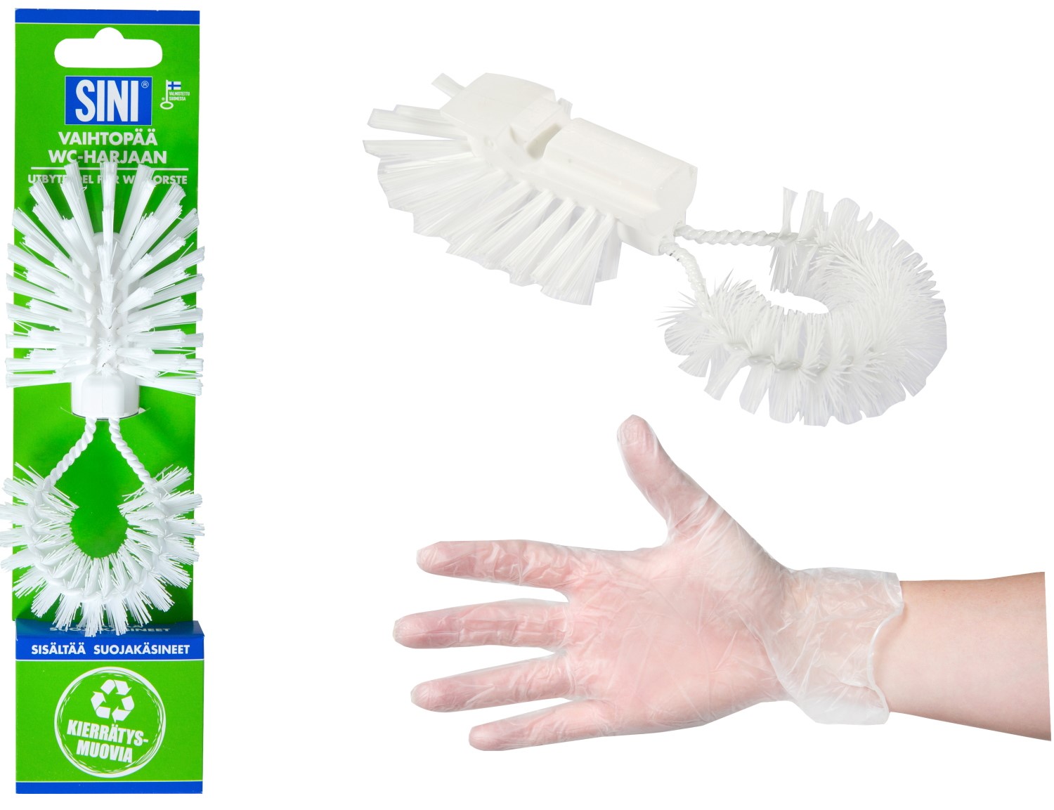 Vid behov kan endast den slitna borstdelen bytas ut i toalettborsten. Detta begränsar mängden avfall. Ersättningshuvudet är lämpligt för den SINI WC-toalettborsten. Ersättningshuvudet är lätt att byta och paketet kommer med skyddshandskar för att byta!
