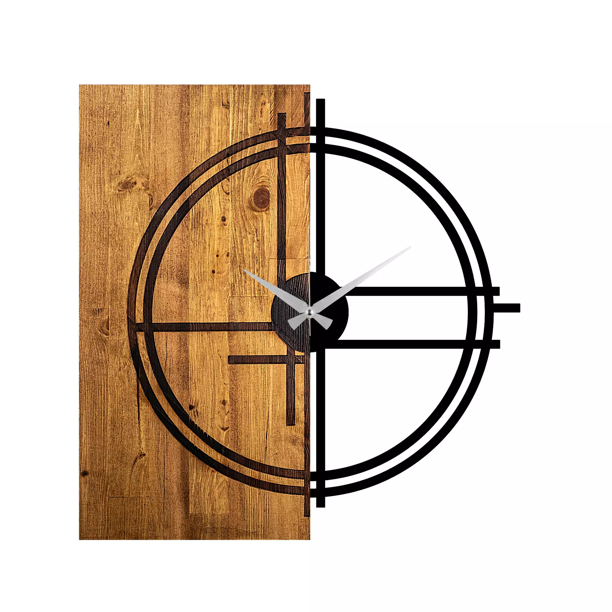 Förvandla ditt vardagsrum, sovrum eller kontor till en fängslande plats med vår dekorativa väggklocka i trä. Dess unika design och oklanderliga hantverk kommer omedelbart att fånga blicken hos alla som kommer in i rummet. Kombinationen av färgerna ljus valnöt och svart ger en modern och elegant touch till din inredning.