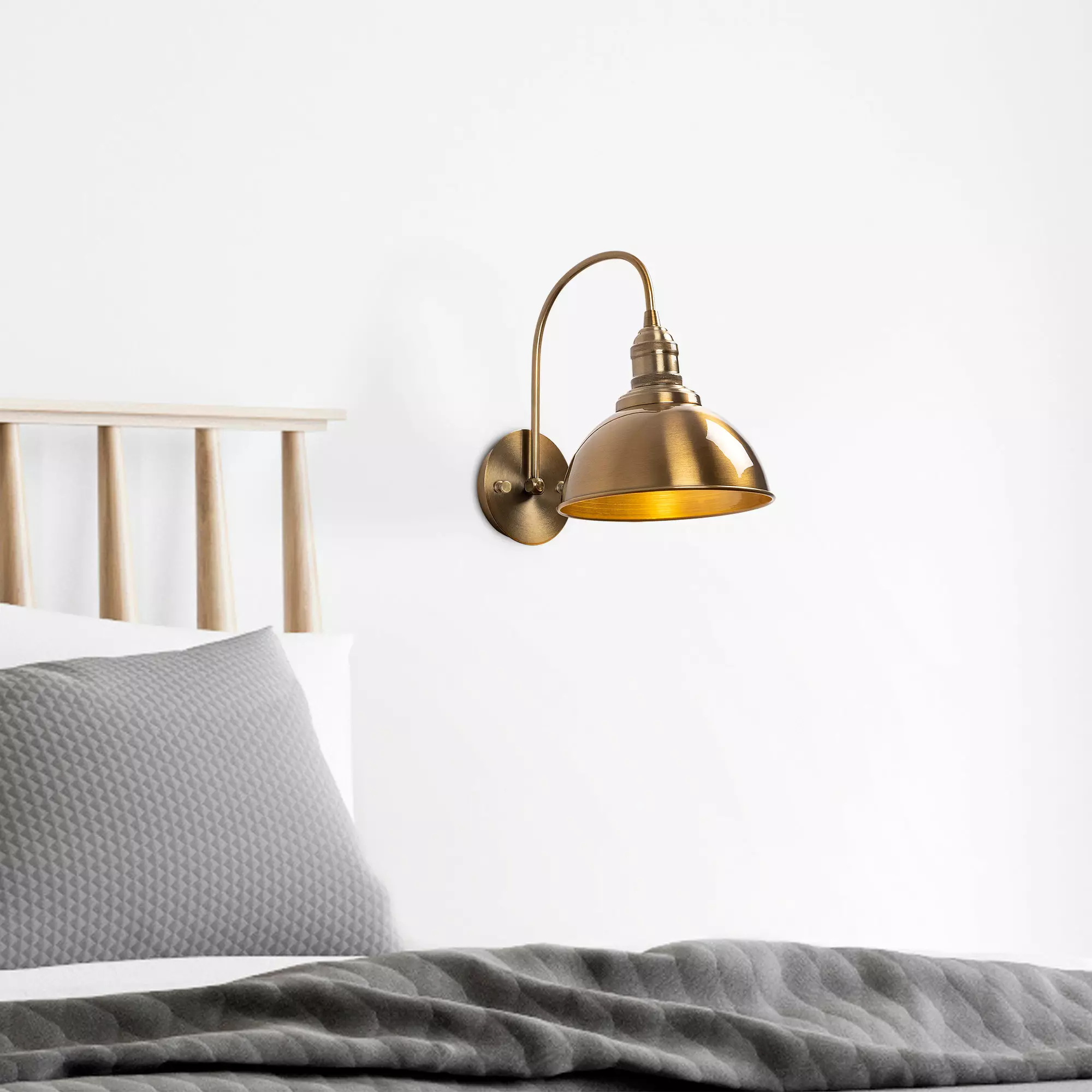 Denna vägglampa med metallhatt och basplatta har en fantastisk kombination av vintagecharm och modern stil. Dess enfärgade koncept ger en touch av enkelhet, medan bohemianism, glam och skandinaviska influenser skapar en fängslande och unik design som säkert kommer att fånga dina gästers blickar.