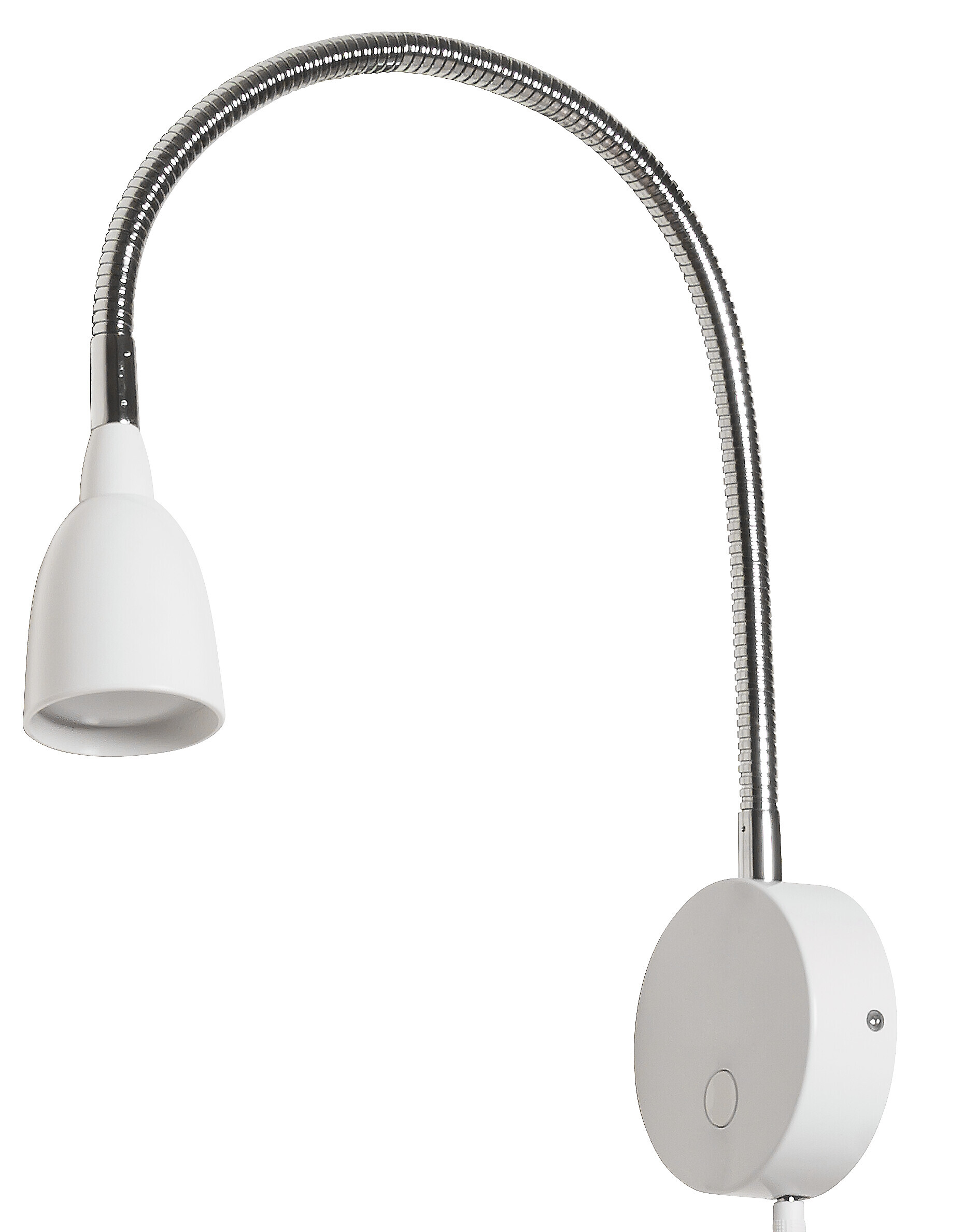 Stella är en serie praktiska läslampor och spotlightarmaturer för den som uppskattar minimalisk enkel design. Den smäckra och renodlade armaturen har integrerade led-ljuskälla på 280 lm. Rikta ljuset med hjälp av det flexibla skaftet fritt åt vilket håll som helst. Strömbrytaren sitter praktiskt placerad på armaturens väggfäste.