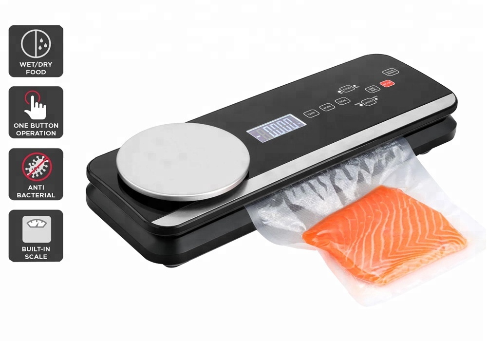 Automatisk vakuumförpackningsmaskin med omfattande justeringsalternativ. Kraftfull vakuumpump och läckagesäker kammarteknik avlägsnar luft effektivt. Extremt tät tätning garanterar hållbarhet. Vakuumförpackar kött, vilt, fisk och bär på ett ögonblick! Maskinen har en köksvåg där du enkelt kan väga mat. En avtagbar avtappningsskål och en integrerad påskärare säkerställer komfort.