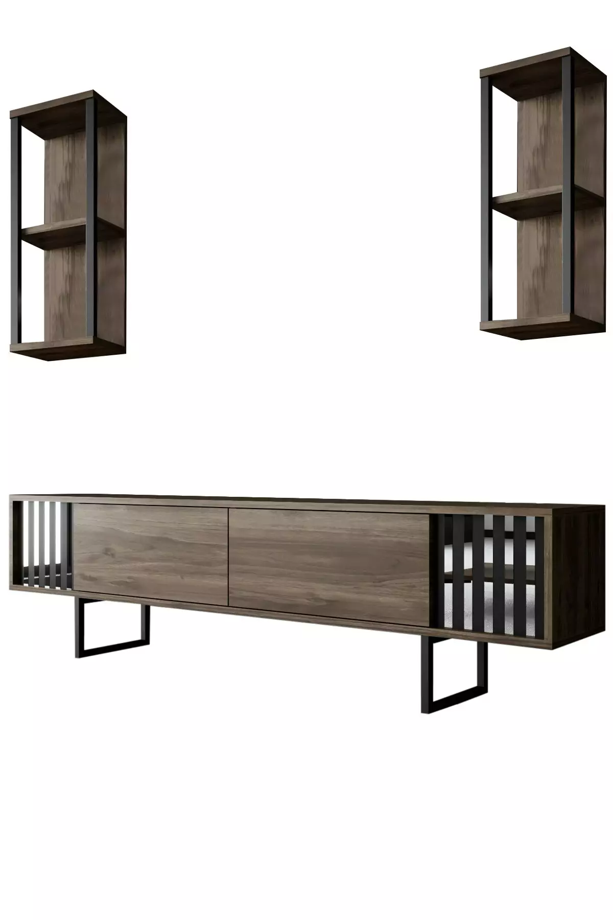 Vardagsrumsmöbelset Hanah Home Chrome Line Valnöt Svart Spånskiva 180x30x48 cm