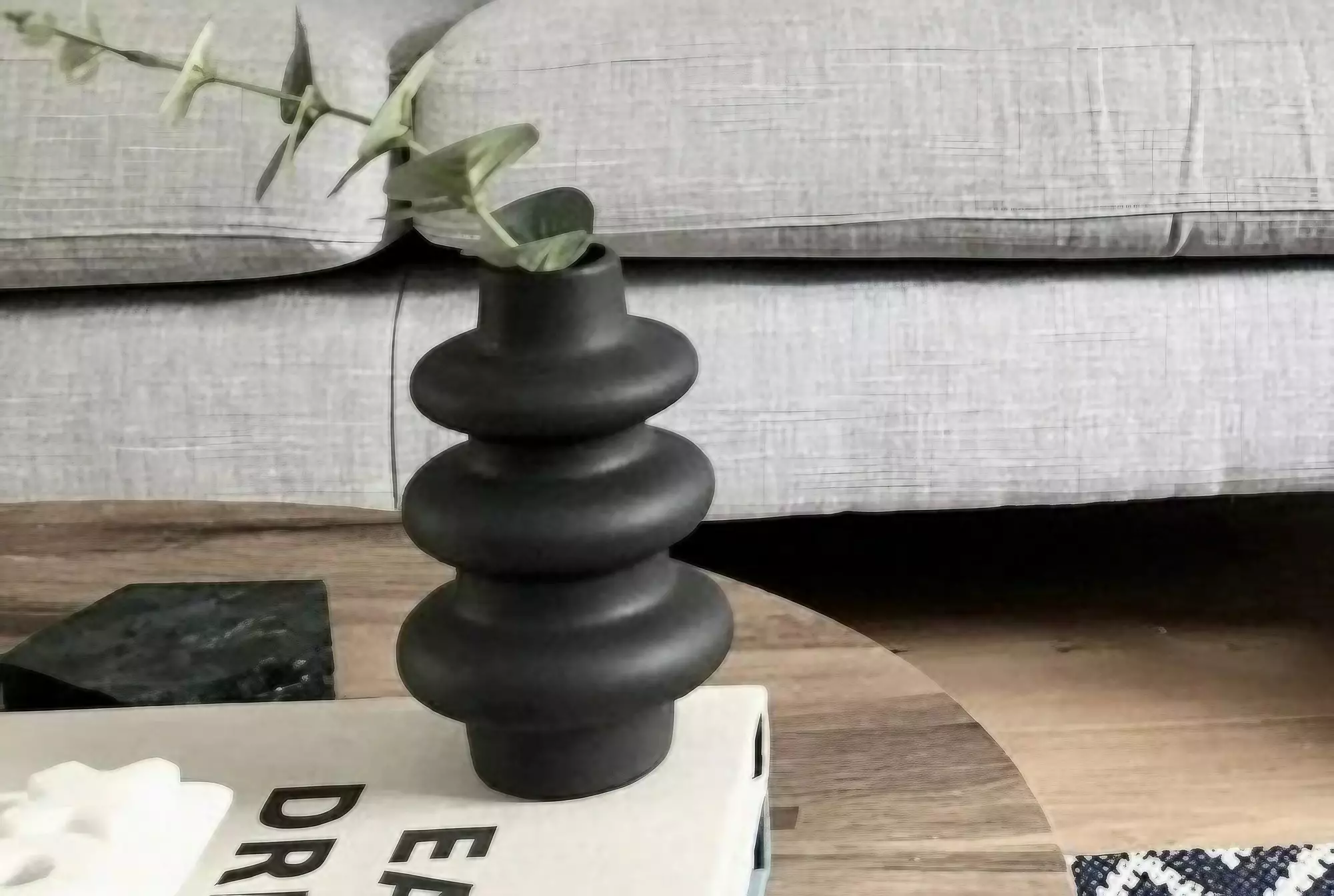 Förhöj stämningen i ditt vardagsrum med vår fantastiska keramikvas i elegant svart. Den här utsökta vasen är inte bara en vas, utan ett konstverk som kommer att ge en touch av elegans och sofistikering till alla rum. Den djupa, rika svarta färgen utstrålar en känsla av mystik och drama, vilket gör den till den perfekta inredningsdetaljen för ditt hem.