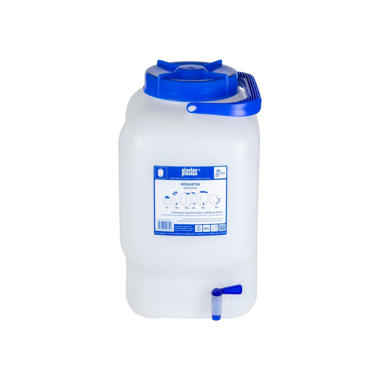 En Finsk, högkvalitativ vattendunk med kran tillverkad i matplast. Lätt att bära med sig och enkel att fylla. fungerar till alla tänkbara drycker. Volym 20 liter.