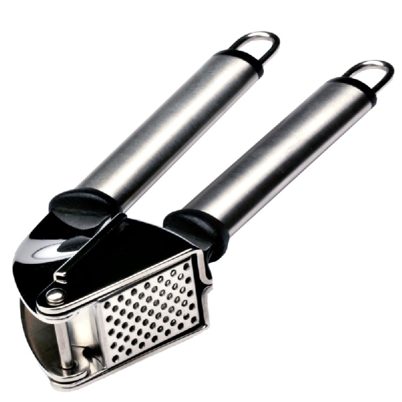- Vitlökspressen har ett stängt handtag av rostfritt stål och fylld med plast. Detta säkerställer hygien och hållbarhet, eftersom smuts och vatten inte kan komma in i handtaget.