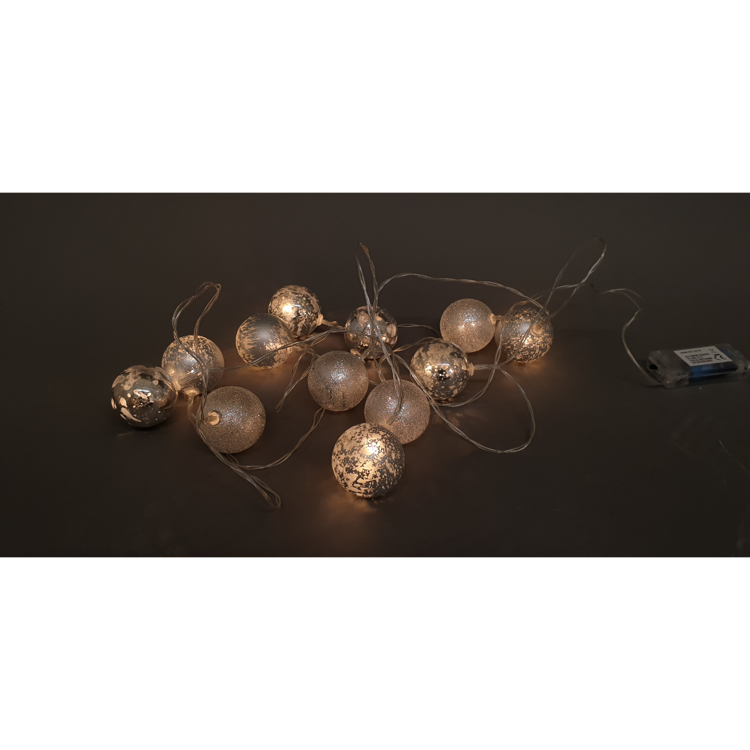 Xmas Balls LED 12x50 mm Silver En vacker belysning med 12 st silverbollar i 50 mm i diameter. Drivs med 2 st AA batterier (ingår ej), första lampan kommer efter 30 cm kabel och varje lampa har ett... Läs mer