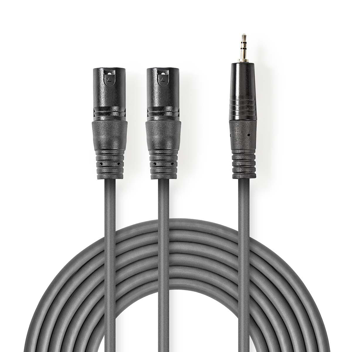 Balanserad ljudkabel | 2x XLR 3-Pin Hane | 3.5 mm Hane | Nickelplaterad | 3.00 m | Rund | PVC | Mörkgrå | Kartonghylsa