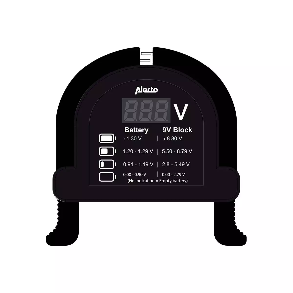 Alecto BTT2 är en universell batteritestare som gör att du snabbt kan se batteriets kapacitetsstatus på den digitala displayen. BTT2 är lätt att använda och fungerar med alla vanliga batterier... Läs mer