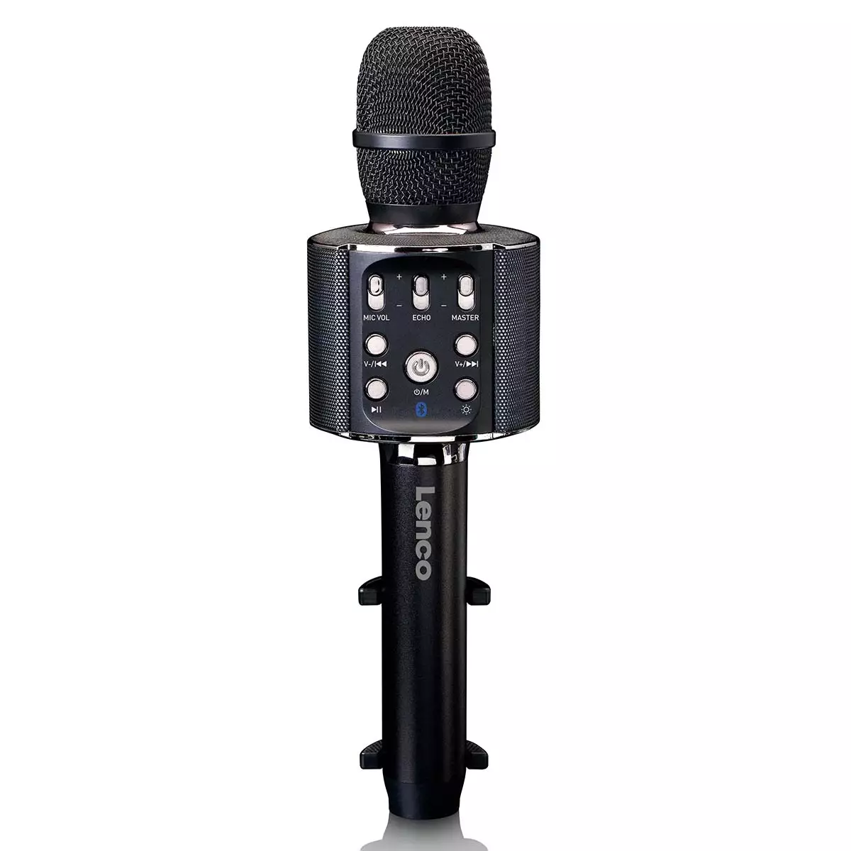 Lenco BMC-090 är en karaokemikrofon med högtalare som fungerar via en Bluetooth®-anslutning. Sjung med till dina favoritlåtar och använd ljus- och ljudeffekterna på mikrofonen för att göra ditt framträdande ännu häftigare. Denna karaokemikrofon har ett uppladdningsbart batteri som räcker i upp till 8 timmar så att du, vänner och familj eller bekanta kan ha roligt i flera timmar i sträck. Mikrofonen kan också anslutas till en HiFi-anläggning. Hur fungerar karaokemikrofonen Lenco BMC-090?Den här mikrofonen fungerar via en Bluetooth®-anslutning och är extremt kompakt, så den kan också tas med till alla typer av fester. Dessutom har Lenco BMC-090 integrerad LED-belysning, så att du kan förbättra ditt framträdande med ljuseffekter. Batteriet i den här produkten håller i upp till 8 timmar, vilket innebär timmar av sing-a-long-glädje med den här karaokemikrofonen! Vilka anslutningar har den här karaokemikrofonen?Den här karaokemikrofonen har följande anslutningar: • USB-port• Linjeutgång• Micro SD-kortplats Hur kan du bäst ansluta Lenco BMC-090? Du kan ansluta Lenco BMC-090 till vilken Hi-Fi-anläggning som helst (AUX IN)Vilka tillbehör ingår i den här mikrofonen? Följande 2 tillbehör ingår i denna mikrofon: • 3,5 mm kabel• USB-kabel