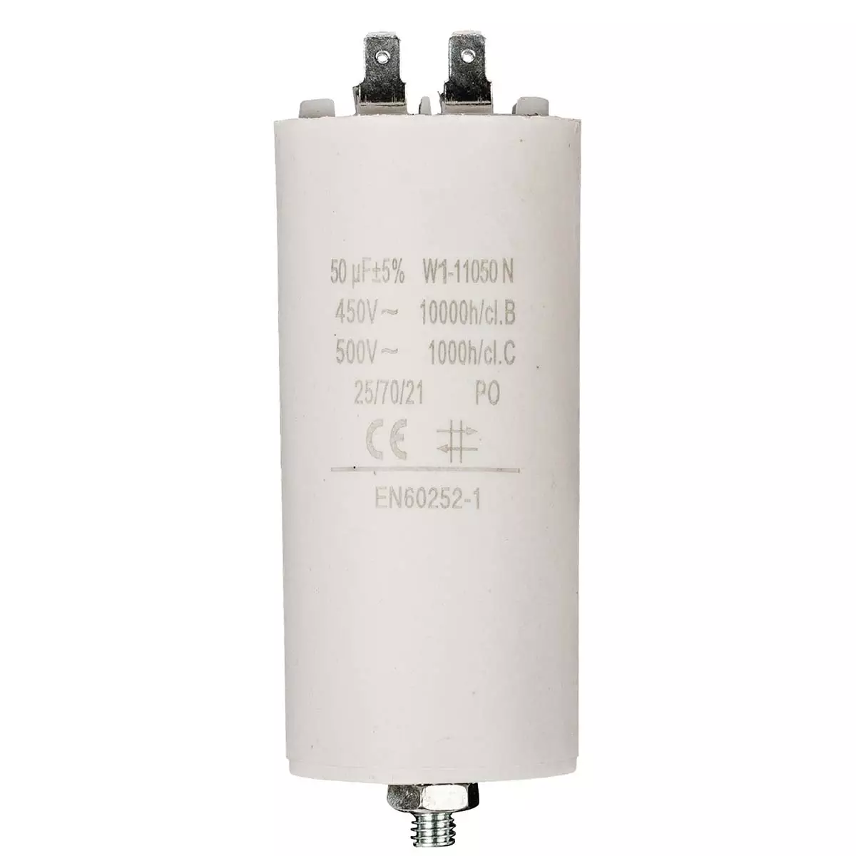 • Capacitor: 50 uF• Voltage: 450Vac• Faston connection• Dimension: Ø 50 x 107 mm