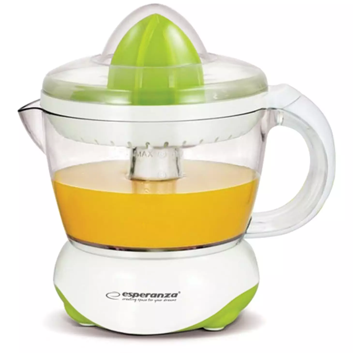 Effektiv och användarvänlig Esperanza citruspress med 25W effekt och 0,7 liters kapacitet. Enkel att använda med en knapp.