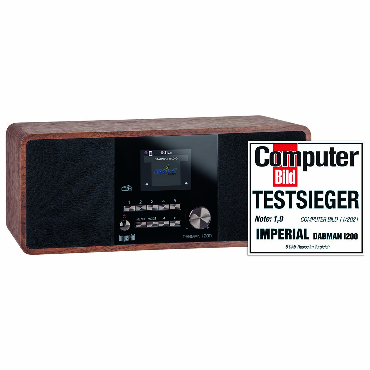 Multifunktionell stereoradio för Internet, DAB+, FM-radiomottagning, med UPnP/DLNA-stöd och många användarvänliga funktioner. Med IMPERIAL DABMAN i200 är du väl förberedd för alla eventualiteter: den multifunktionella enheten är lämplig för mottagning av DAB+ och FM-radio och har även tillgång till mer än 25.000 Internetradiostationer.De två 3-tums högtalarna, som är perfekt inbäddade i det eleganta trähöljet på DABMAN i200, producerar ett voluminöst stereoljud som kan anpassas till individuella lyssningspreferenser med hjälp av olika equalizer-inställningar.UPnP möjliggör nätverkande med motsvarande enheter i hemnätverket, så att ljudfiler i olika format från externa källor också kan spelas upp på radion.Spelning av de senaste hitsen och favoritartisterna via Spotify stöds också tack vare Spotify Connect.*Andra användarvänliga funktioner som installationsassistent, larmfunktion och minne för flera stationer avrundar DABMAN i200:s funktionsutbud och gör den till en absolut toppenhet i den här klassen. *Spotify Premium krävs för att använda Spotify Connect. All information om Spotify Premium finns på www.spotify.com/premium.