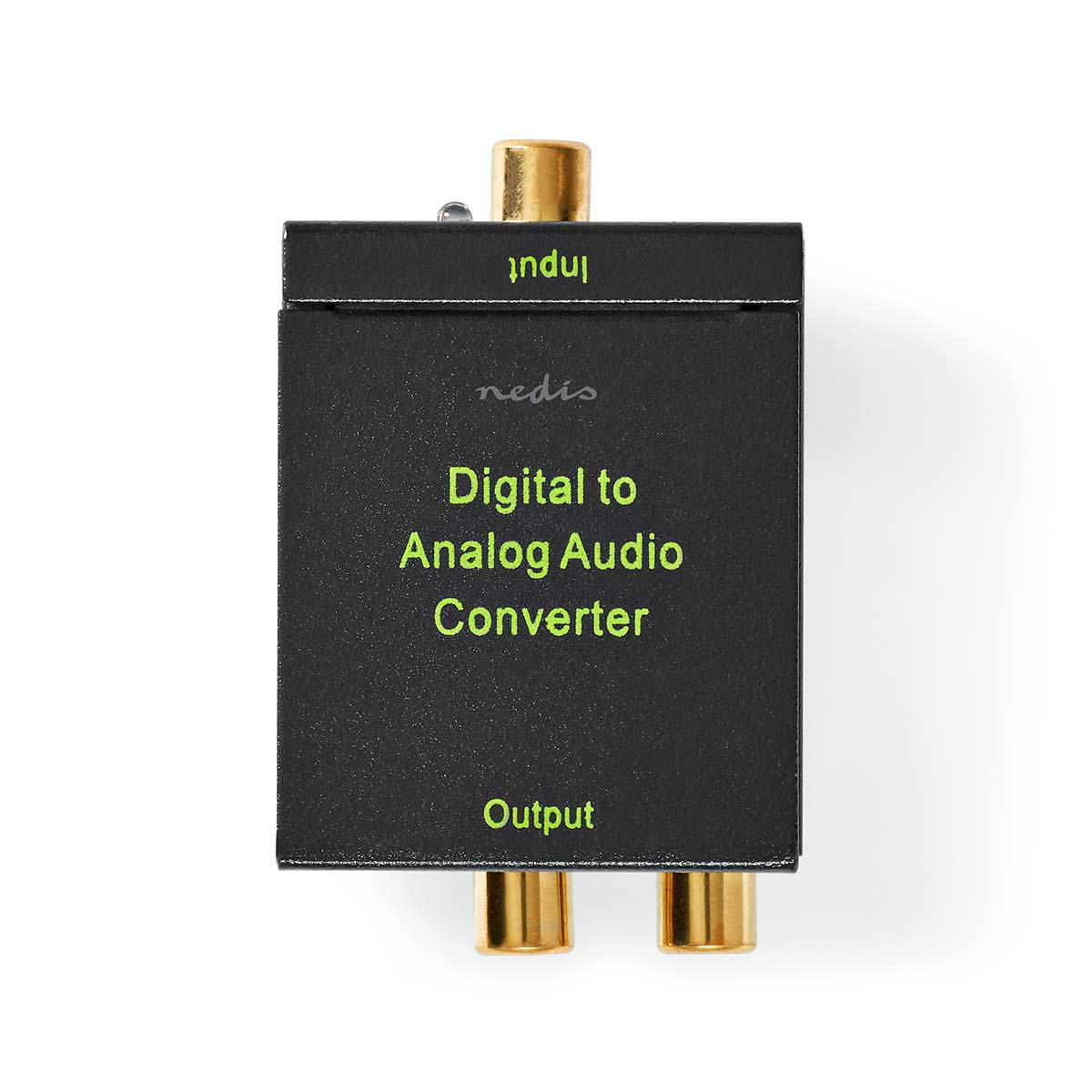 Den här digitala till analoga ljudomvandlaren (DAC) med metallhölje kan konvertera en digital ljudsignal till analog. Med den här omvandlaren kan du ansluta en enhet med optisk Toslink-utgång eller koaxial RCA (S/P-DIF) utgång till en förstärkare eller mottagare med analog Tulp-stereo 2x RCA-ingång.Omvandlaren har dessutom en anslutning för hörlurar. Till exempel kan en DVD- eller Blu-ray-spelare anslutas till enhetens ingång och då kan signalen skickas via en optisk TOSLINK- eller S/P-DIF-koaxialanslutning. Vid utgångsporten skickas ljudsignalen via RCA-uttaget.