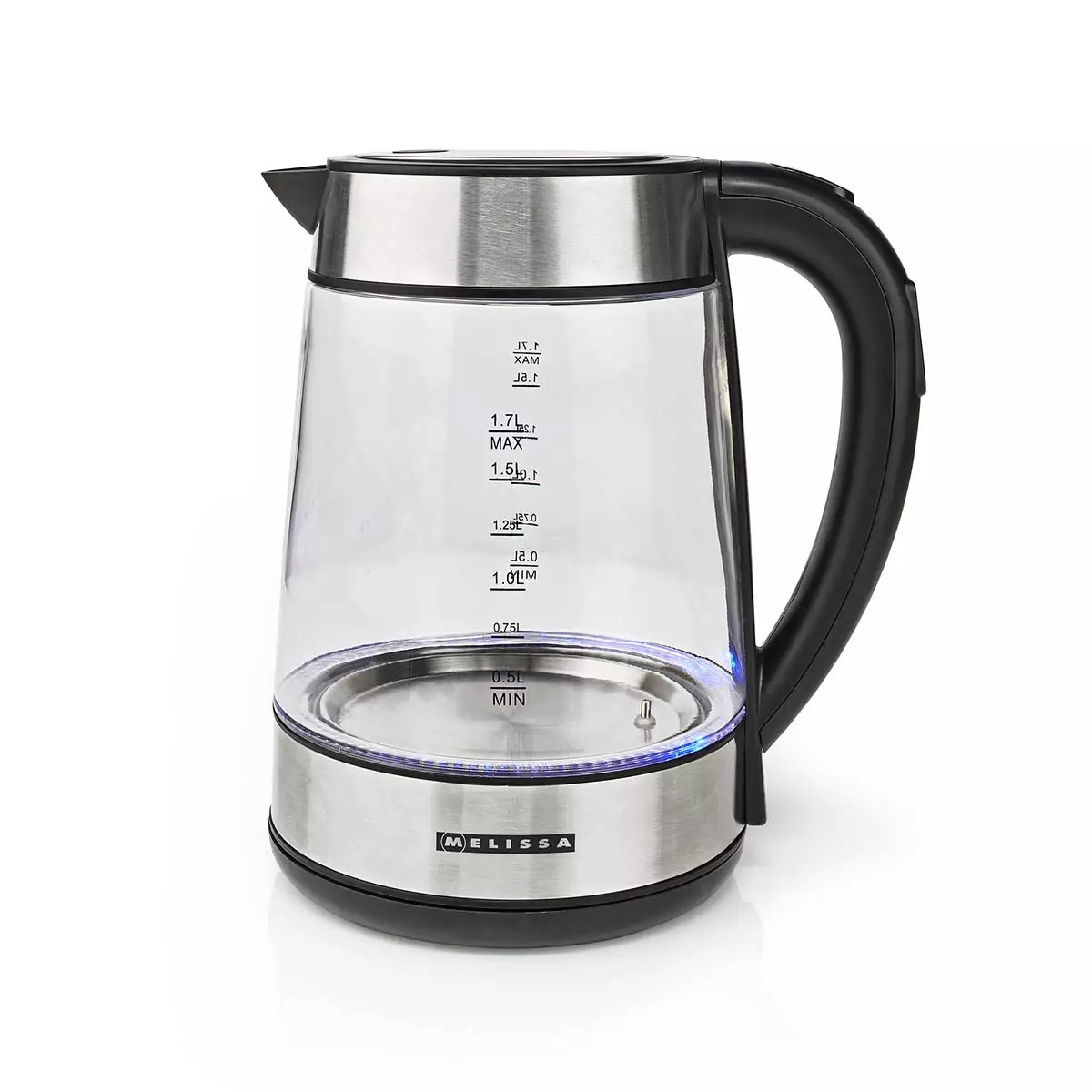 • Digital vattenkokare i glas med detaljer i rostfritt stål och en volym på 1,7 liter