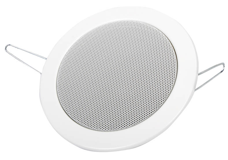 10 cm (4") takmonterad högtalare med vit metallkåpa (RAL 9010).Lämplig för användning i alla typer av ihåliga tak.Enkel montering i rund utskärning med fjäderarm.En push-plint möjliggör snabb och enkel anslutning.En kompakt lösning för hem- och professionell användning med bra ljudkvaliteter. Typiska Användningsområden• För musik och tal i butiker, hemma, hotell mm.
