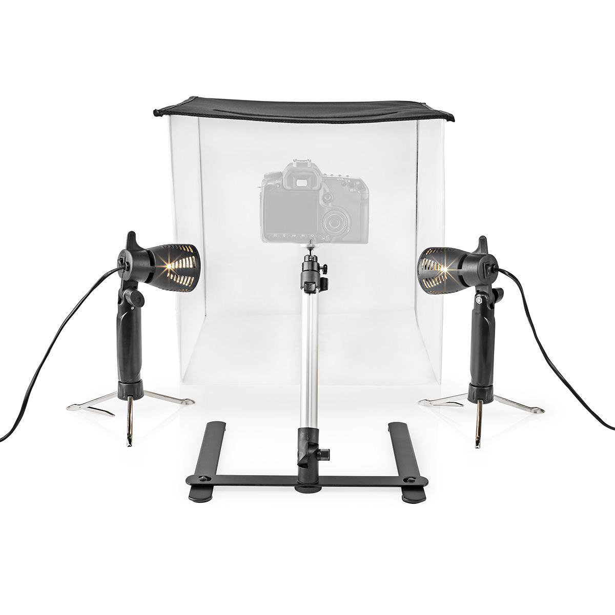 Praktisk, vikbar fotostudio som levereras med två lampor, fyra utbytbara bakgrundsfärger och ett ministativ som kan justeras i höjdled. Nylonväggar och lampor minskar blänk och reflexer i bilderna. Det är enkelt, även för oerfarna fotografer, att ta vackra bilder med rätt ljussättning och rätt färgförhållande. Du behöver knappt redigera bilderna, vilket är praktiskt om du ofta lägger ut bilder, till exempel på auktionssajter. Fotostudion fungerar bäst med kompaktkameror eller lätta spegelreflexkameror. Transportväska för att ta med fotostudion ingår.