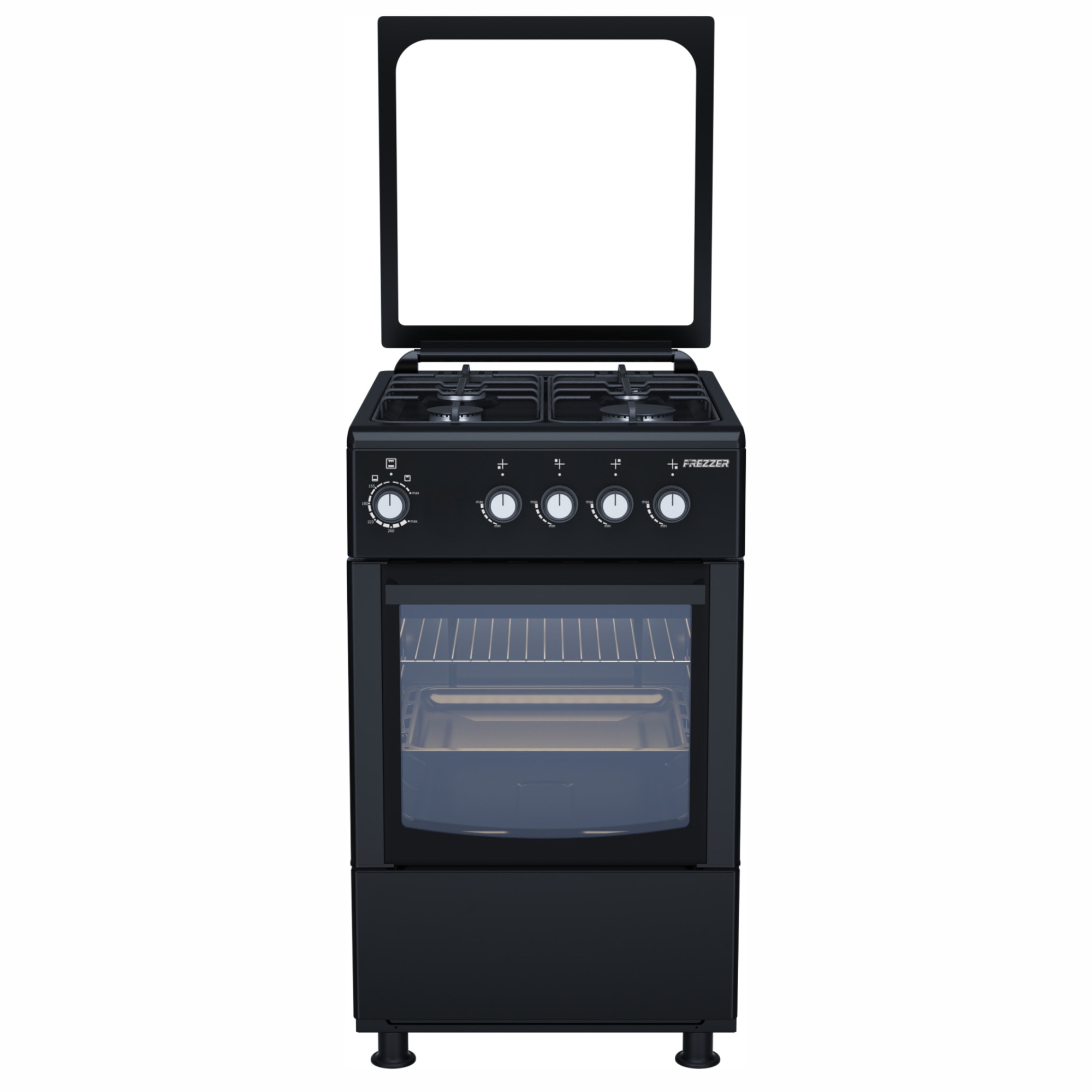 Frezzer-spisen har fyra gasbrännare. Ugnen har normala gasolbrännare och grillfunktion. Ett metalllock som gör kaminen till en arbetsyta. Dubbelglas i luckan. En stilren och pålitlig gasolkamin för både hem och stugor.