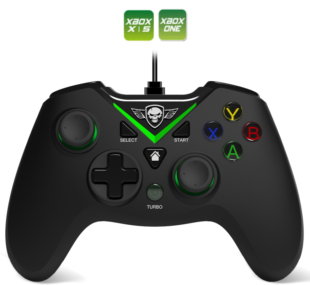 Spirit of Gamer Race Wire Xbox Game Controller är ansluten och designad för att vara kompatibel med Xbox-spelkonsolen. Den bekväma hemknappen ger dig direkt tillgång till konsolinställningar. Styrenheten är ergonomiskt utformad för en bra spelupplevelse. Spelkontrollen har två nivåer av vibrationsfeedback.