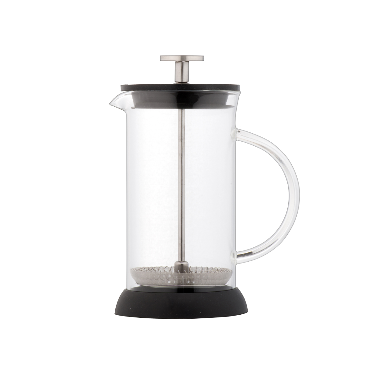 Den snygga pressobryggaren är tillverkad av värmebeständigt borosilikatglas och rostfritt stål. Pannan har en hållbar kolv.