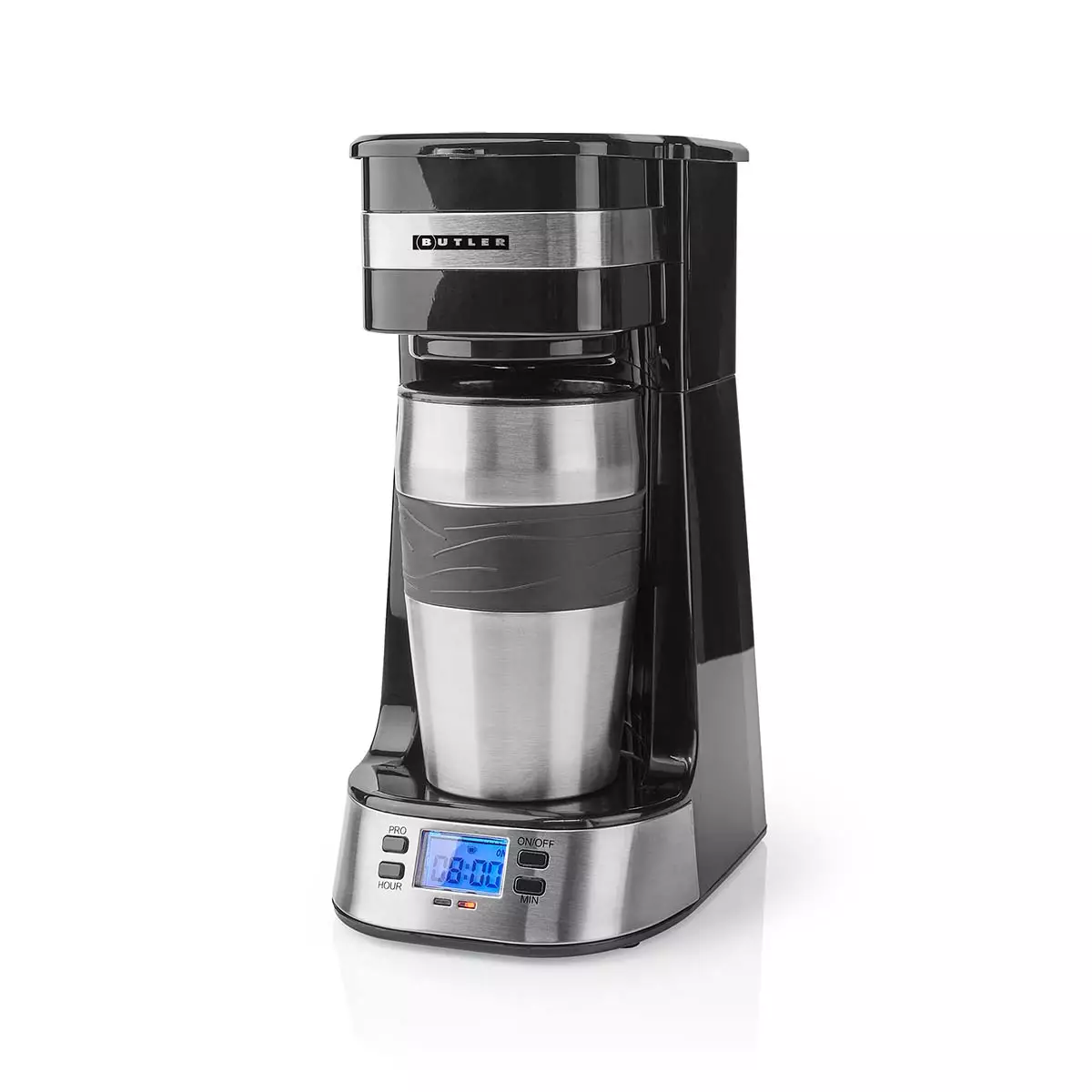 Kaffebryggare för en portion | 0,4 l | 750 W | Timerfunktion | Isolerad resemugg | Automatisk avstängning | LCD-display | Svart